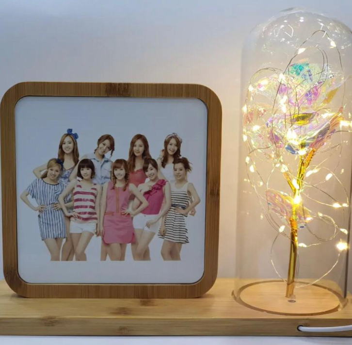 Wooden Photo frame with magnetic wooden base and led light quantity